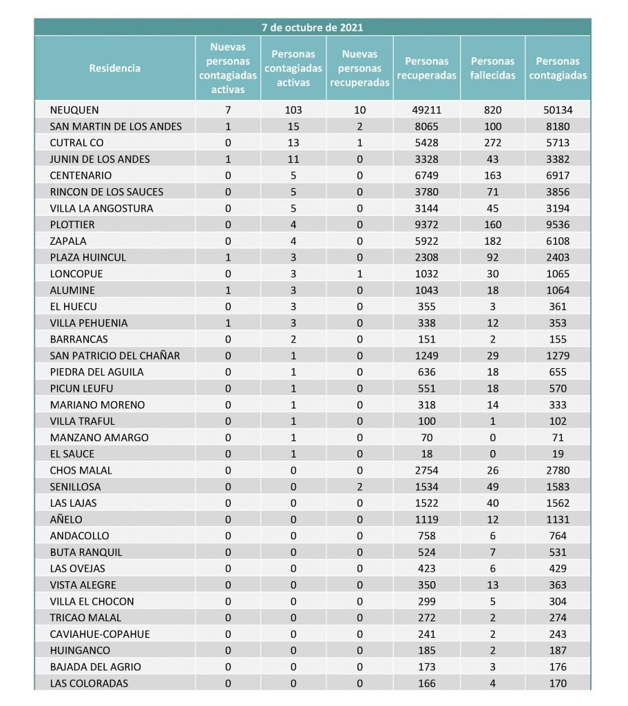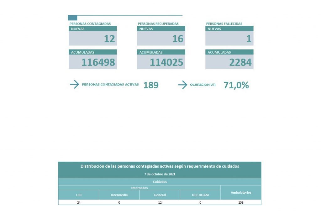 Además se informó que quedan 189 personas contagiadas en toda la provincia y que el nivel de ocupación de la camas de terapia intensiva es del 71%