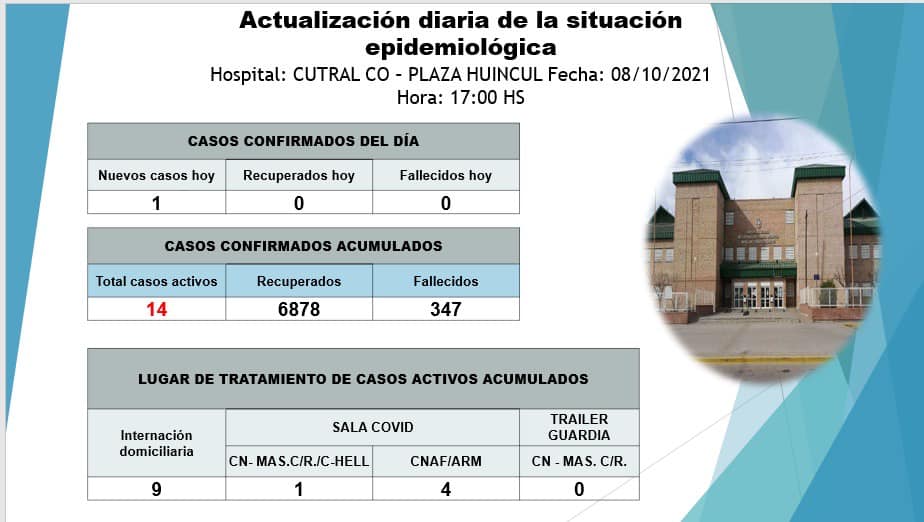En cuanto a las personas internadas hay, en total cinco. Cuatro pacientes tienen asistencia respiratoria mecánica y uno requiere otro tipo de suministro de oxígeno. En sus domicilios transitan la enfermedad nueve vecinos y vecinas.