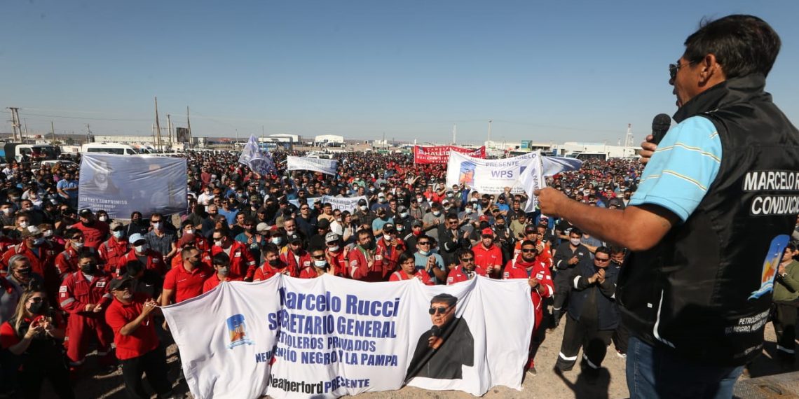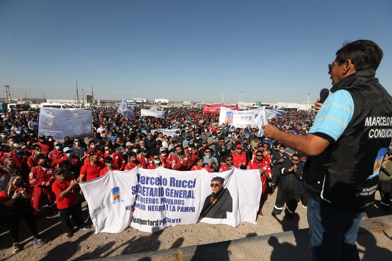 “Hace pocos días pudimos firmar con Halliburton y otras empresas, el pase a plaza a planta de todos los compañeros. Pusimos fin a los contratos a término”, informó Rucci a los miles de trabajadores que asistieron a la asamblea realizada en el Parque Industrial de Añelo.