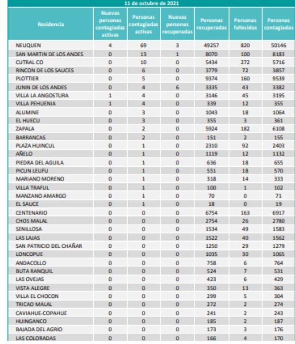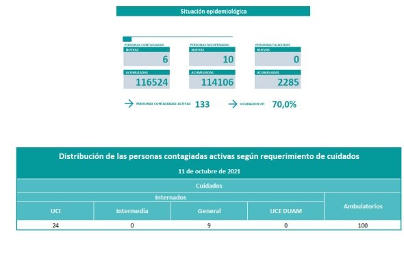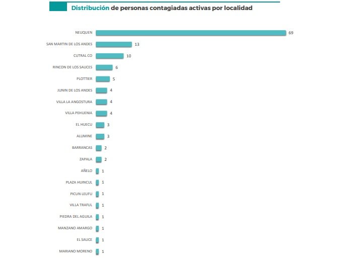Los casos activos son 133 en el territorio neuquino y el porcentaje de ocupación de las camas UTI es del 70 % en este lunes, según se indicó. De esta manera, descendió también la ocupación.