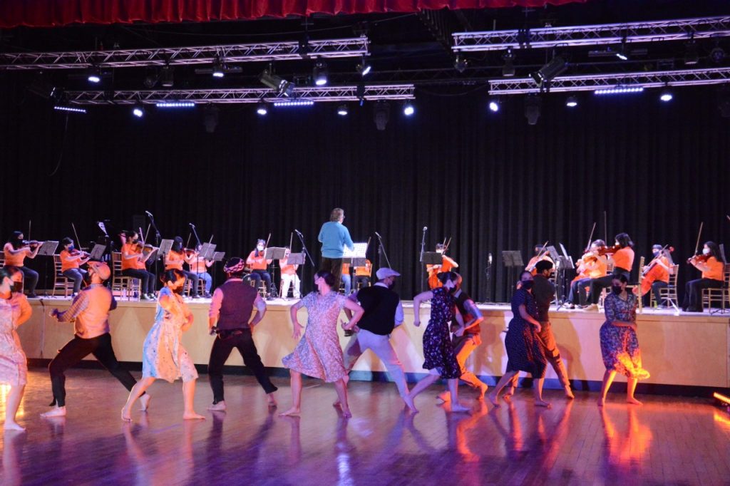 La orquesta abrió el espectáculo con 4 interpretaciones de canciones latinoamericanas. Mientras que el Ballet Municipal adelantó extractos de dos presentaciones que tiene a futuro en el calendario de obras.