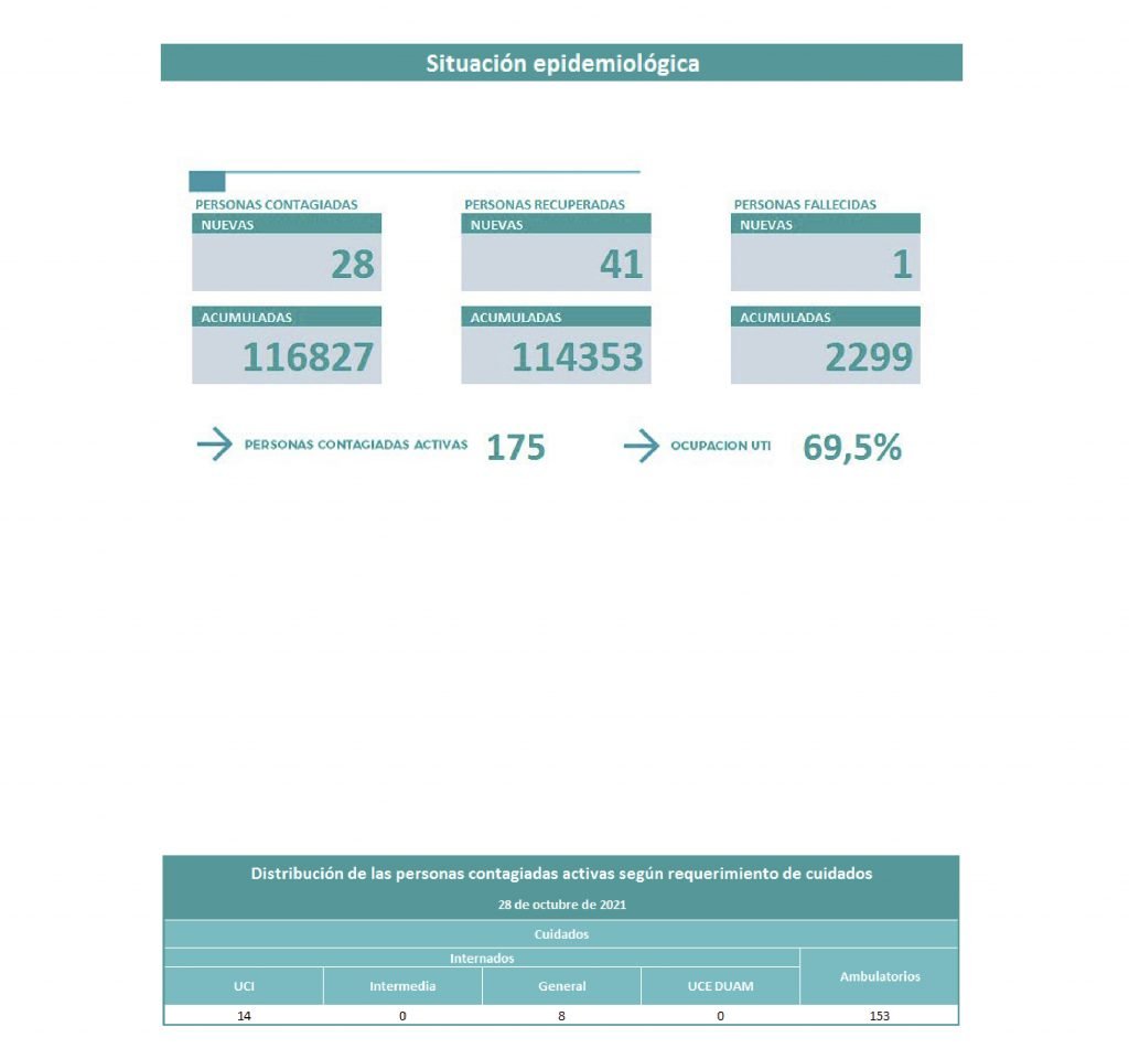 Con esta información, el total de personas contagiadas es de 175 y la cantidad de camas ocupadas es de 69,5%