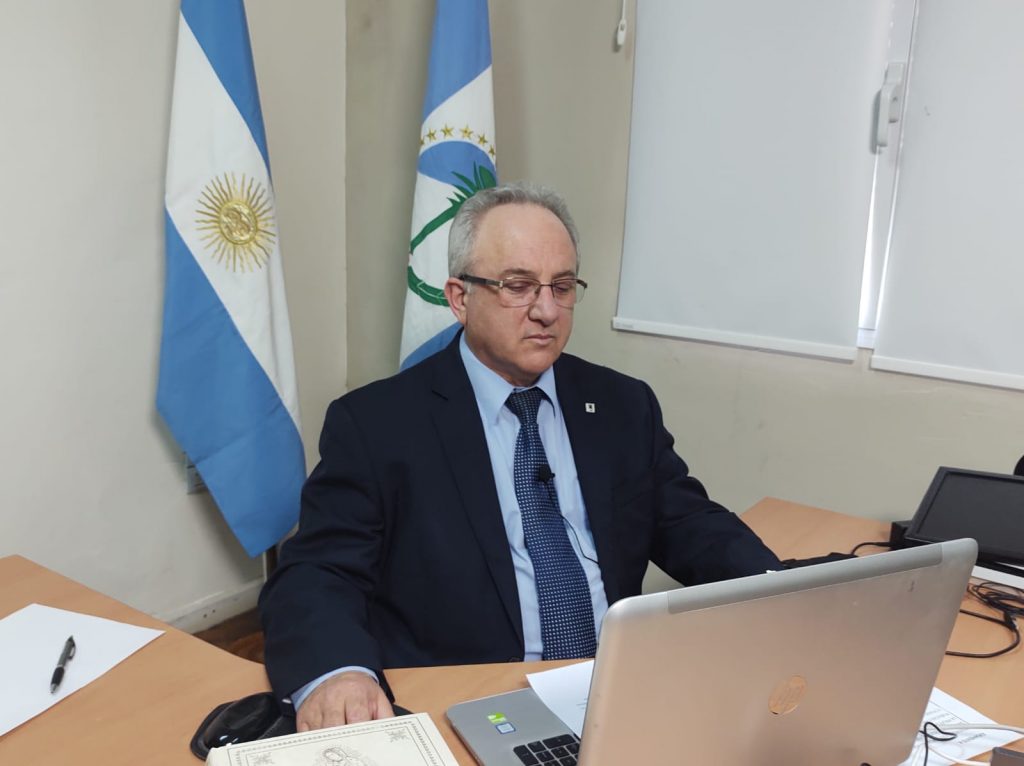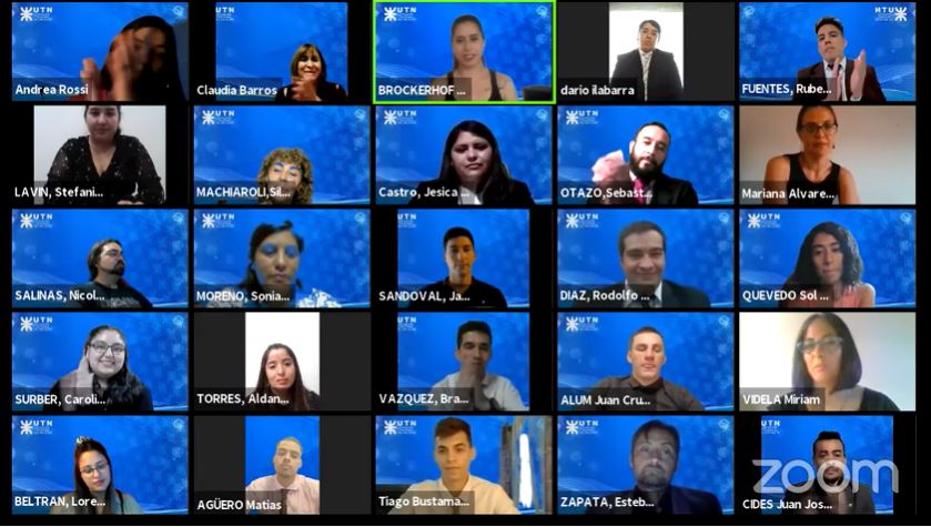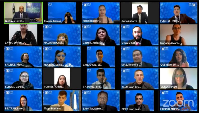 Los flamantes egresados y egresadas, participaron de la videoconferencia desde sus hogares, mientras que el decano de la FRN, Pablo Liscovsky tomó juramento y brindó unas palabras desde las instalaciones de la sede central.