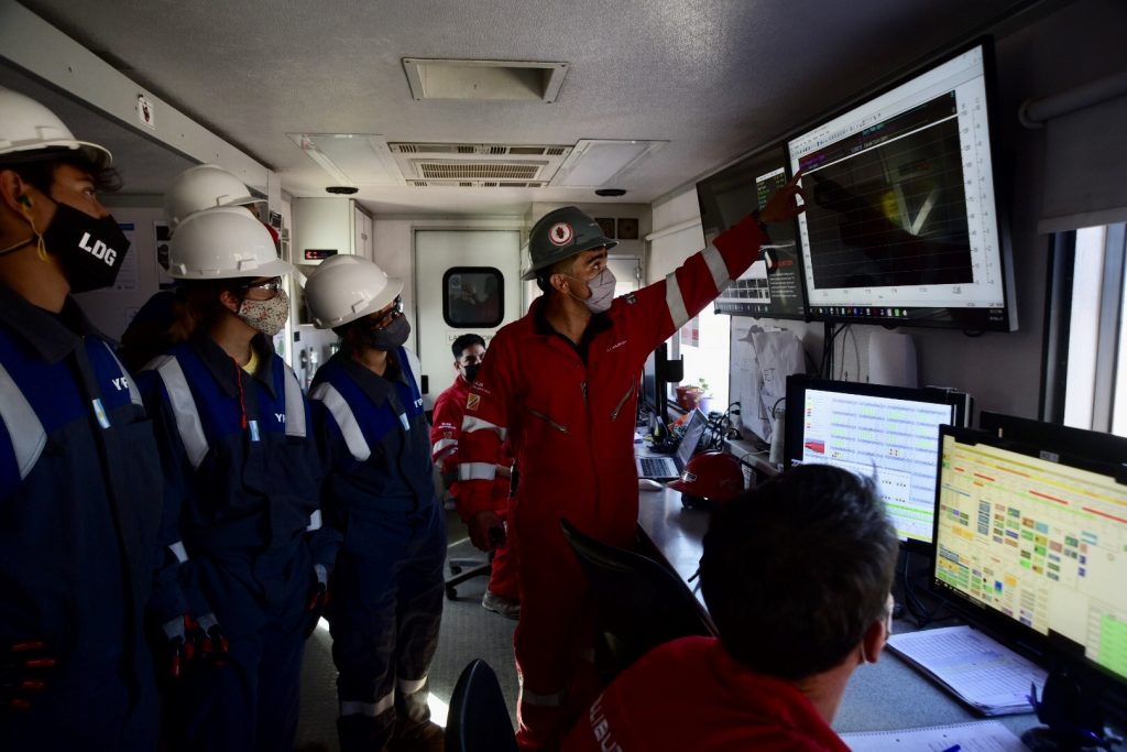 Durante la jornada, realizada en Loma Campana, dos grupos de chicas y chicos de Plaza Huincul, Centenario y Añelo, visitaron un equipo de perforación y un set de fractura. En la visita pudieron experimentar cómo es una operación en tiempo real, luego de haber realizado varias semanas de prácticas en los simuladores 3D de YPF y de Nabors, así como en las plantas de bombas y laboratorios de Halliburton.