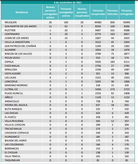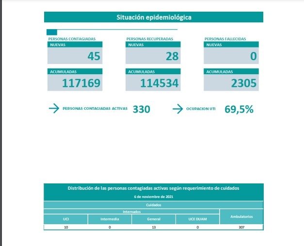 En cuanto a los casos activos son 330 en todo el territorio neuquino y la ocupación de camas UTI es de 69,5 %, tal como se indicó.