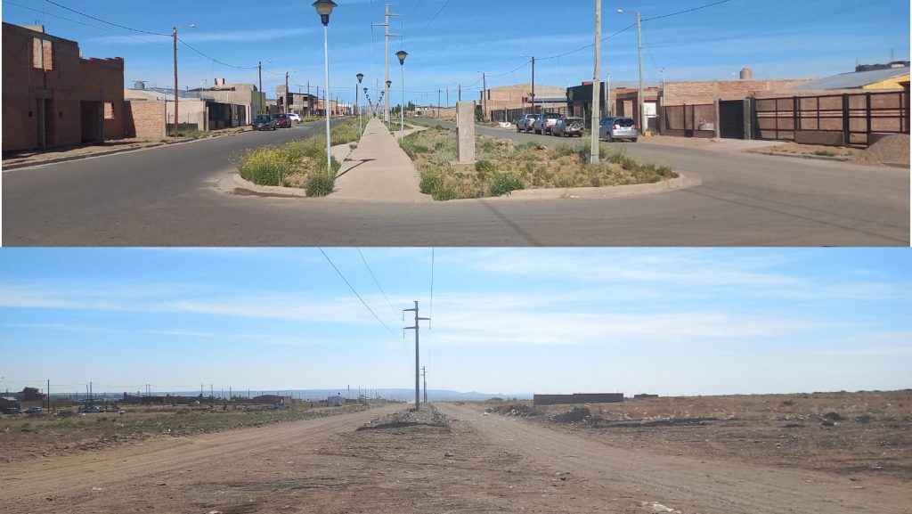 Huincul está asfaltando la avenida Benito Perez, la está parquizando, pero esa obra no completa las necesidades ya que Cutral Co urbanizó toda la avenida Godoy, que comunica a todo el sur de la ciudad hasta el puente “Del Aluvión”. Y del otro lado, baldío. (foto comparativa). Allí ahora hay una huella del lado de Huincul, pero hay muchos vehículos que transitan por el sector y pronto será una necesidad.