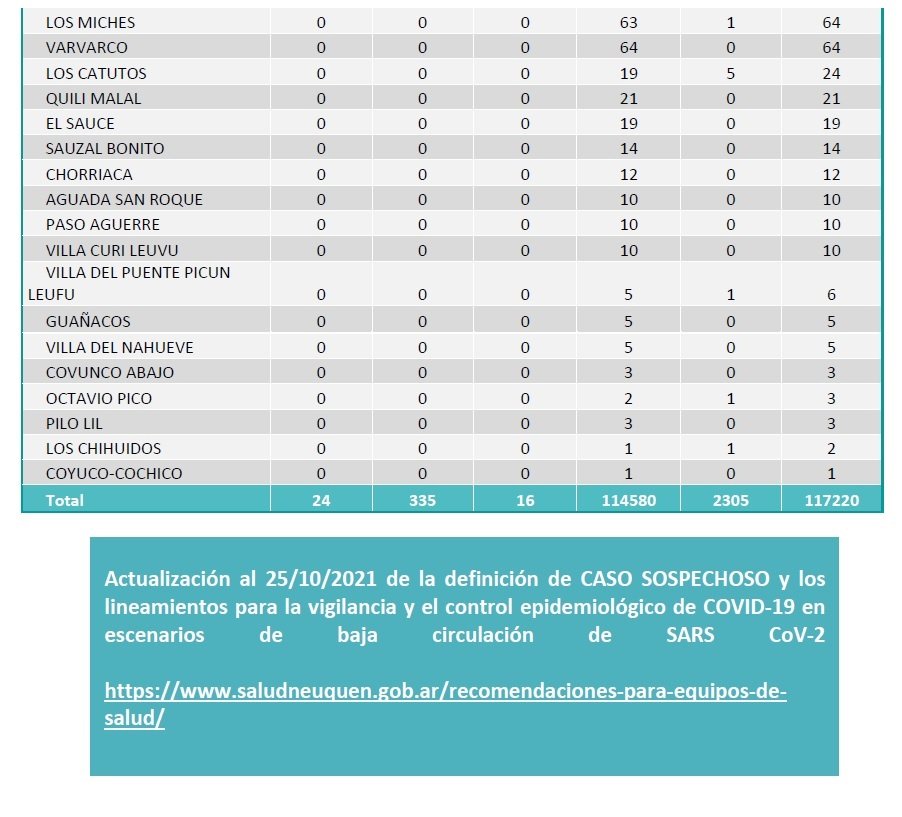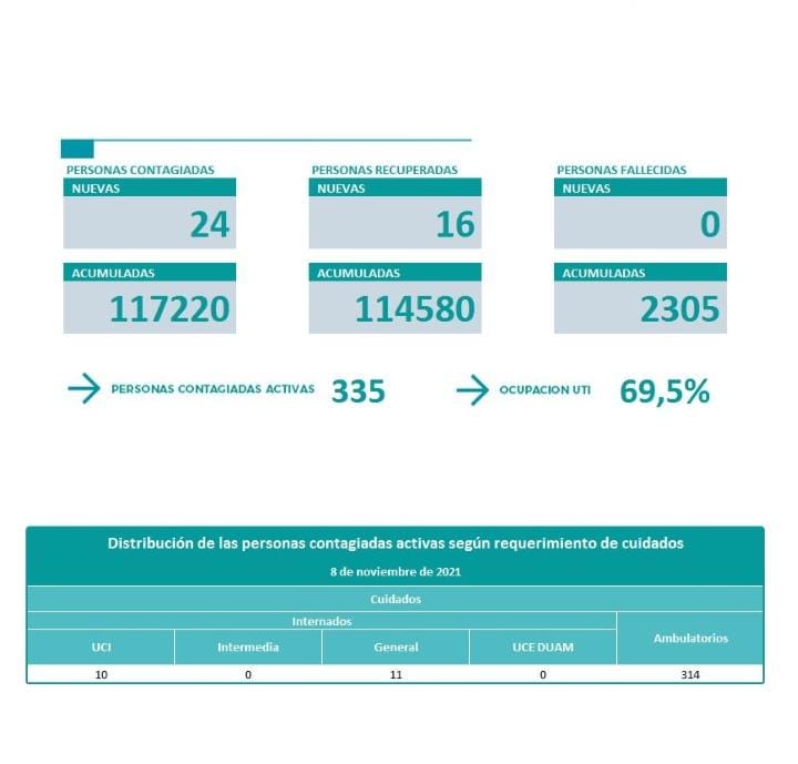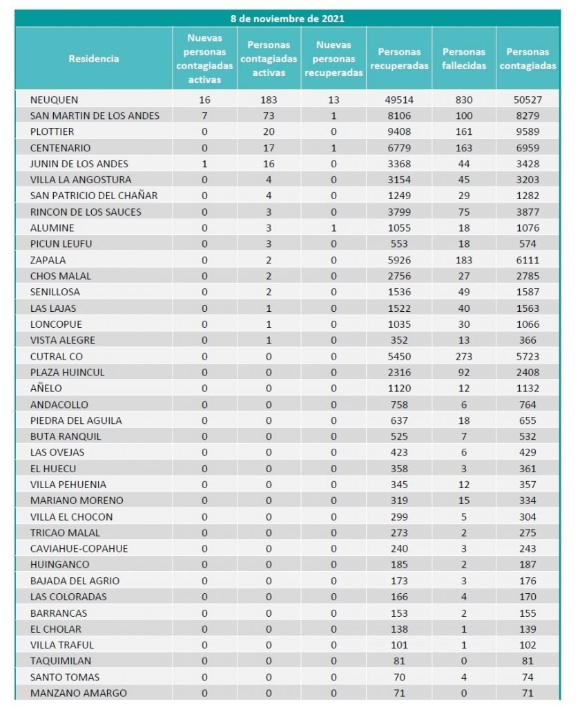 En cuanto a los recuperados, hubo 16 en toda la provincia de Neuquén y los casos activos son 335. Como suele ocurrir desde hace unas semanas atrás, la ocupación de camas UTI se ubica en el 69,5 %.