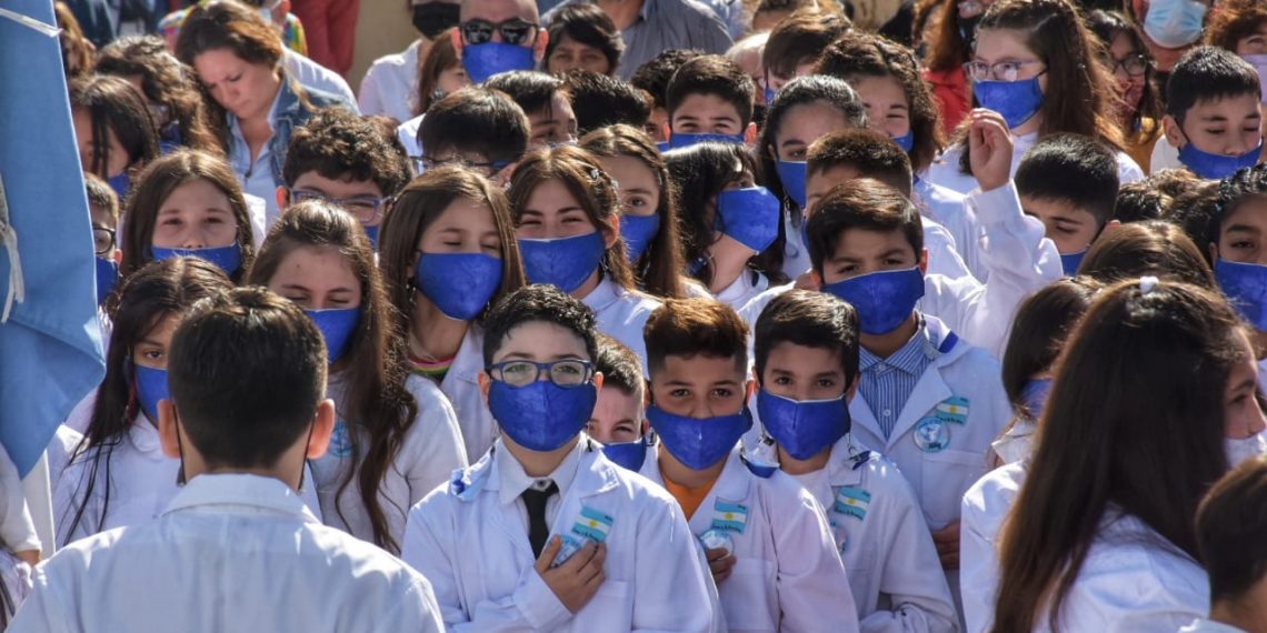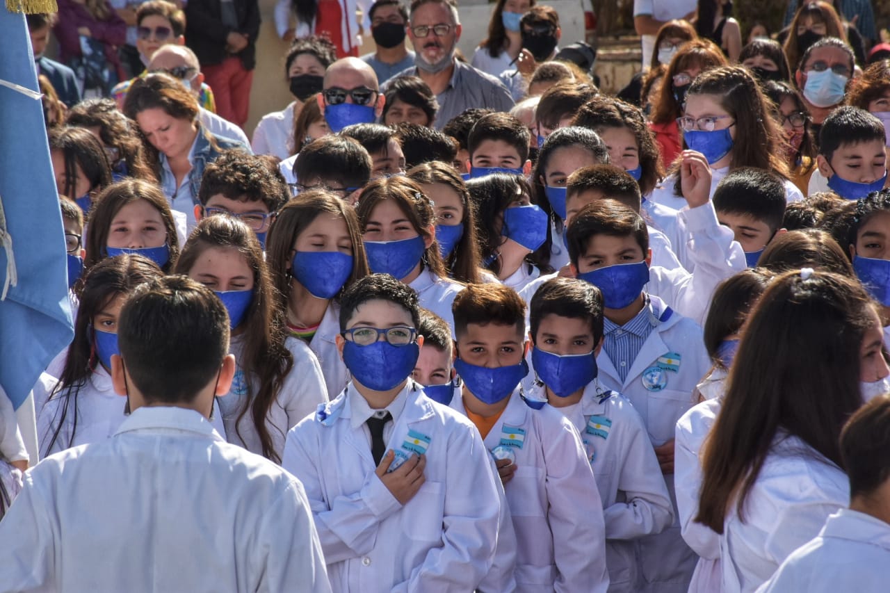 La ceremonia de promesa a la bandera que se realizo en conjunto con todas las escuelas de la ciudad contó con la presencia del intendente Gustavo Suárez.