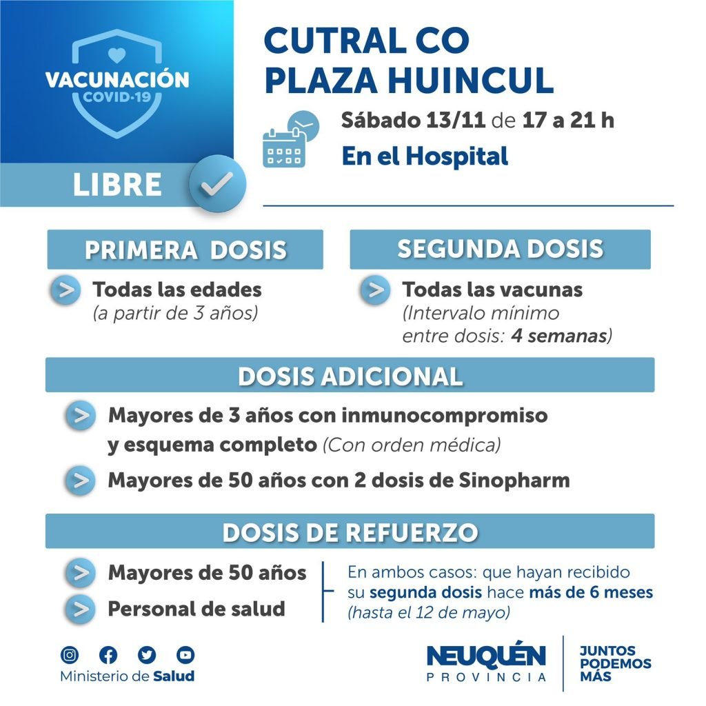 Hoy sábado 13, se realizará una nueva campaña de vacunación libre en el hospital de Complejidad Media. Será desde las 17 hasta las 21 y estará orientada a aplicar primeras y segundas dosis.