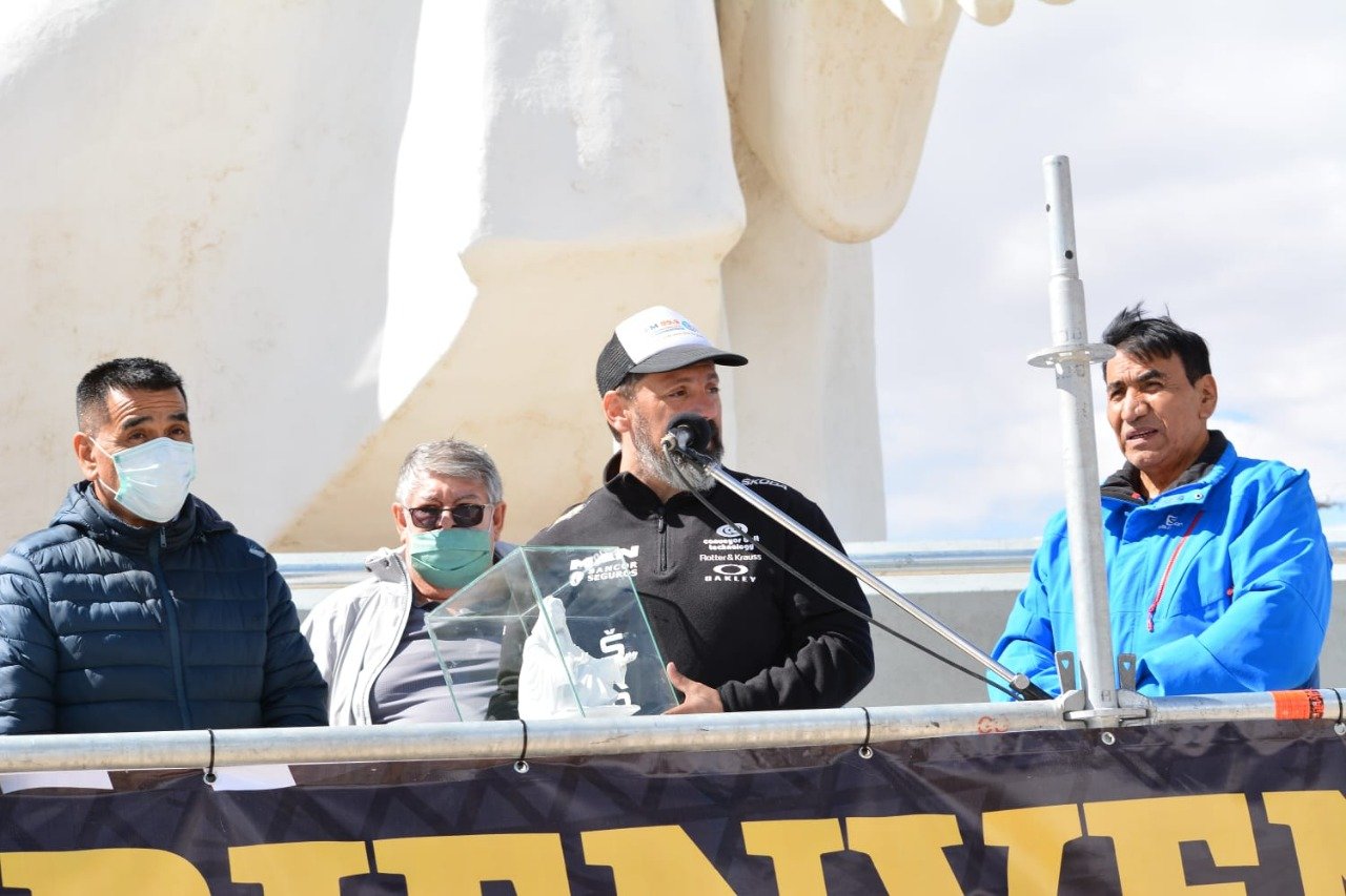 El intendente José Rioseco, le obsequió justamente una imagen a escala de la figura escultórica representativa de la ciudad. “Sabemos que Cristo siempre te acompañó en todas tus carreras, y hoy te queremos regalar este símbolo para todos los cutralquenses”, dijo el jefe comunal.