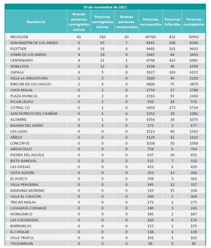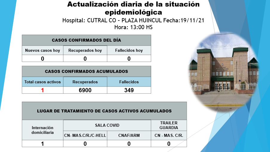En Cutral Co y Plaza Huincul, desde el servicio de Epidemiología del hospital local se indicó que la situación indica un caso activo de Covid-19 y no fue necesaria su internación.