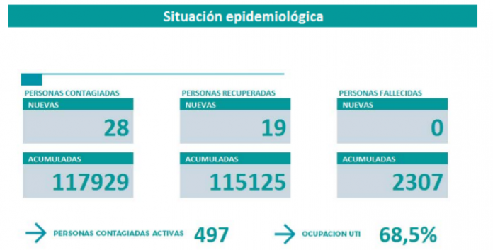 Las personas recuperadas suman 19 en todo el territorio provincial. En cuanto a los casos activos, son 497 y la ocupación de las camas UTI alcanzan el 68,5 %.
