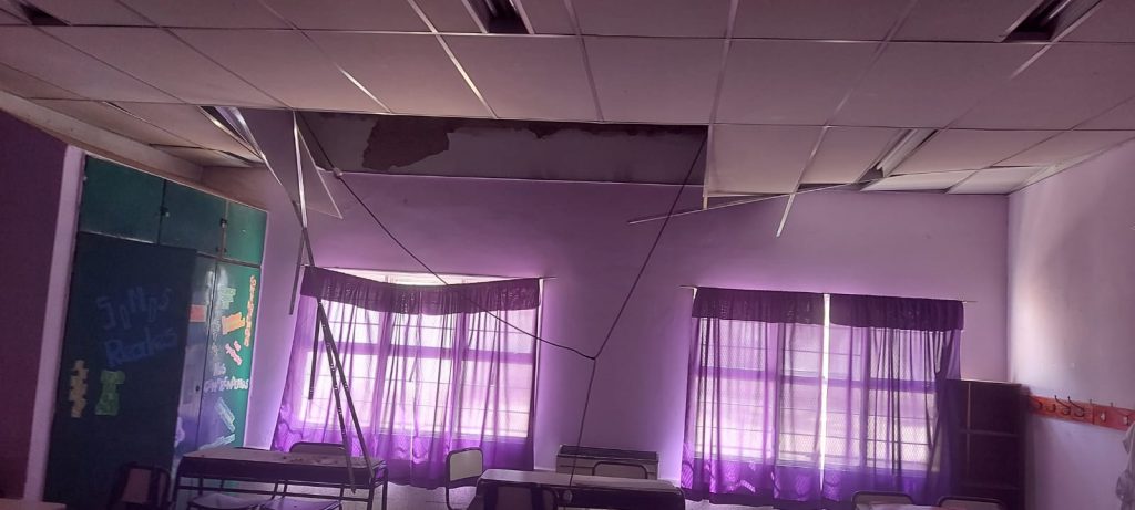 “Evidentemente queda demostrado que se hizo el arreglo de los techos la obra no está del todo bien porque con una brisa, se produjo la caída del cielorraso”, destacó Sandoval.