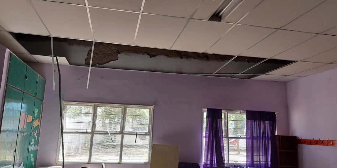 Las clases en la escuela primaria Nº 119 están suspendidas hasta nuevo aviso. El cielorraso que se desprendió está en el aula 10 del sector oeste del edificio escolar.