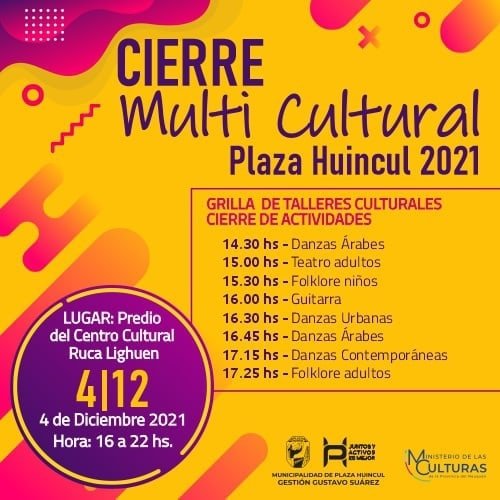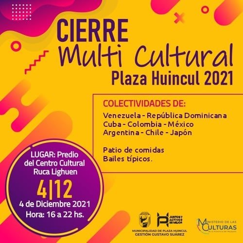 Habrá cierre de actividades con “Fiesta Multicultural” en Plaza Huincul