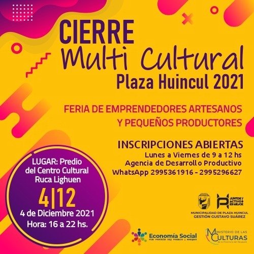 Allí habrá presentaciones musicales que serán una forma de demostrar “la diversidad de culturas que tenemos en nuestra provincia y en nuestro país. Por supuesto la entrada será libre y gratuita al público en general, y nos pone muy contentos poder recibir a los artesanos y emprendedores de nuestra localidad y también de la ciudad de Neuquén que vendrán a exponer sus productos”.