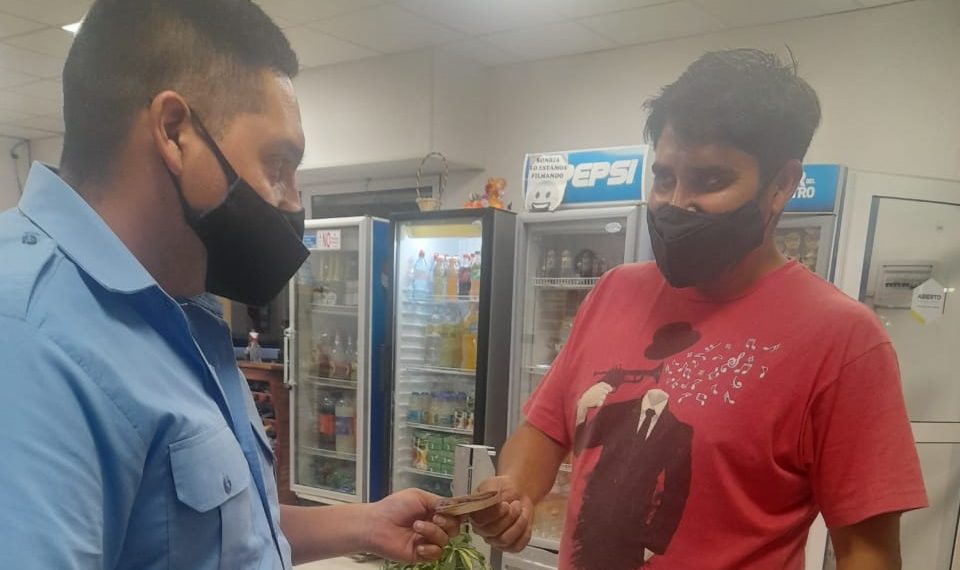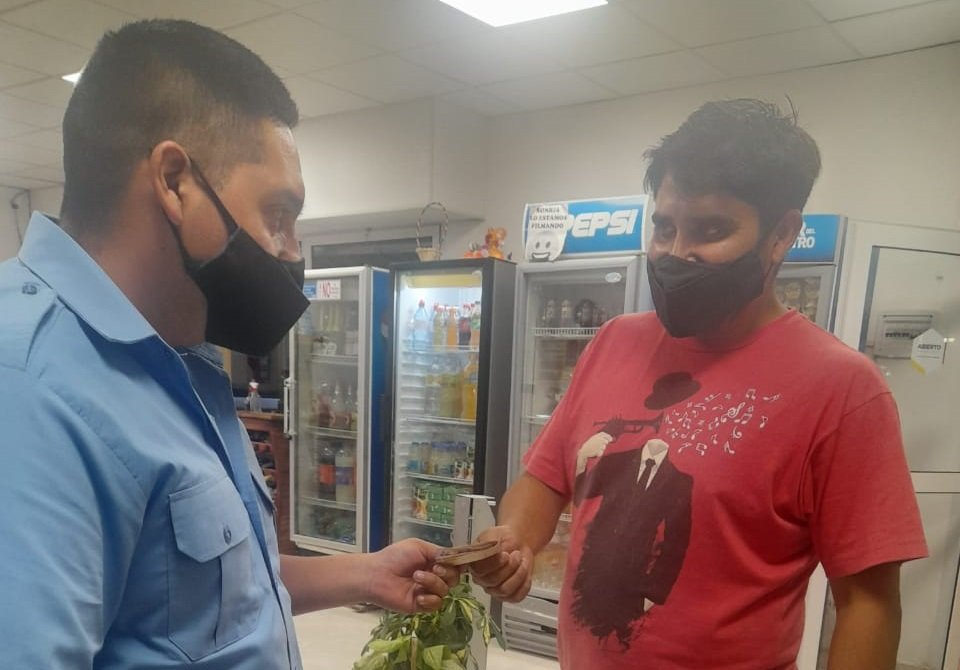 El agente Marillán lo advirtió, tomó el dinero y alcanzó al hombre para regresárselo en mano. El gesto conmovió a los comerciantes y clientes en el lugar, que fotografiaron al uniformado para hacer viral el agradecimiento.