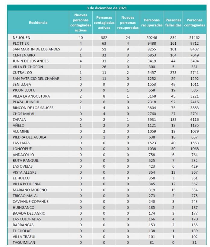El comité de emergencia provincial confirmó que hubo tres personas fallecidas por coronavirus en la provincia. Mientras que los nuevos casos confirmados son 62 en todo el territorio neuquino.