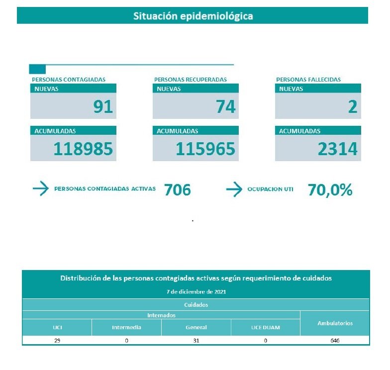 En cuanto a las personas recuperadas son 74 en todo el territorio provincial, mientras que la cantidad de casos activos es de 706. La ocupación de camas UTI es del 70 %.