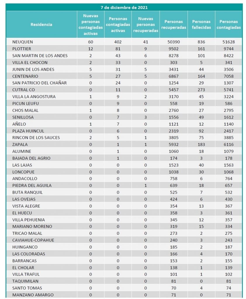 En Cutral Co y Huincul, la situación epidemiológica de hoy es de 1 nuevo caso.