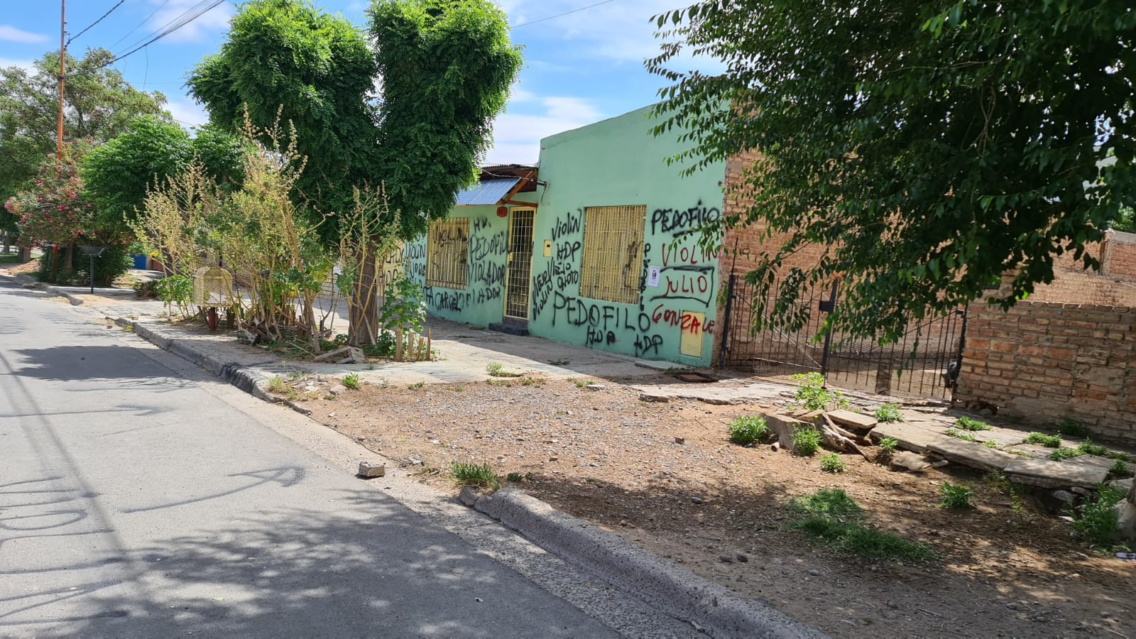 Estas circunstancias generaron indignación y anohe se realizó un escrache en el domicilio donde vive. Personas que conocían el caso realizaron pintadas sobre el frente de la vivienda, en la vereda, en la calle y en la esquina de la avenida Carlos H. Rodríguez con Belgrano para advertir al resto de los vecinos que el violador vive allí.