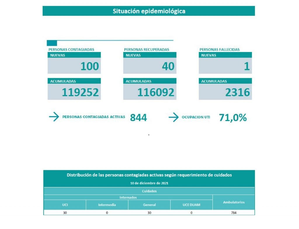 En cuanto a las personas recuperadas, son 40 en el territorio provincial. En cuanto a la ocupación de camas UTI también se advirtió un incremento: 75 %. Los casos activos son 844.