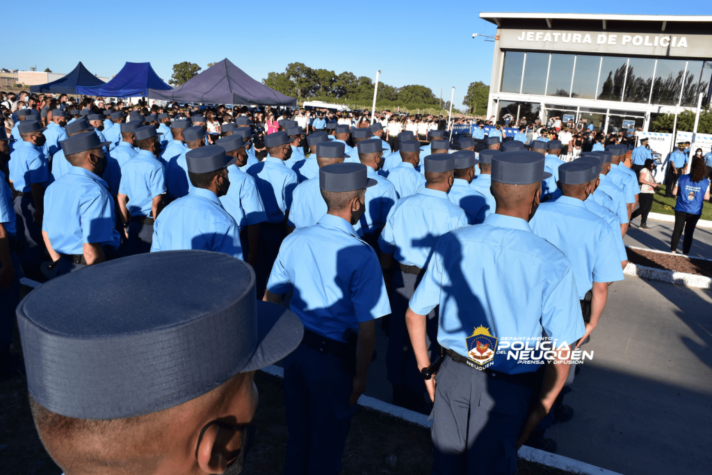 Ambos actos estuvieron encabezados por las autoridades policiales, el gobernador Omar Gutiérrez; el vicegobernador Carlos Koopman y la ministra de Seguridad Vanina Merlo.