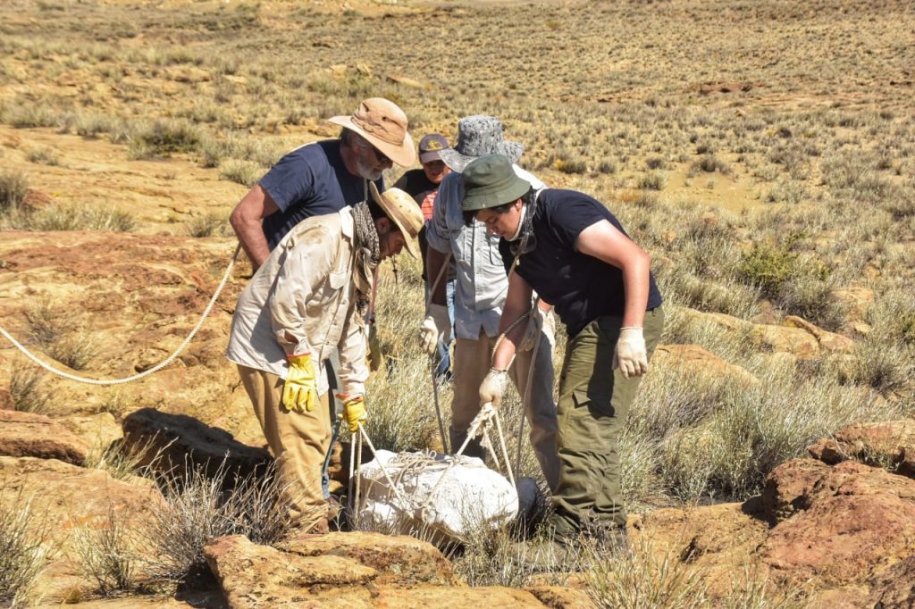 El equipo de paleontólogos que pertenece al museo “Carmen Funes” terminó la campaña en el campo, en cercanías de Las Lajas para extraer los fósiles del hallazgo de un dinosaurio que se produjo hace unos años. El paso siguiente será el traslado para el análisis y estudio en laboratorio.