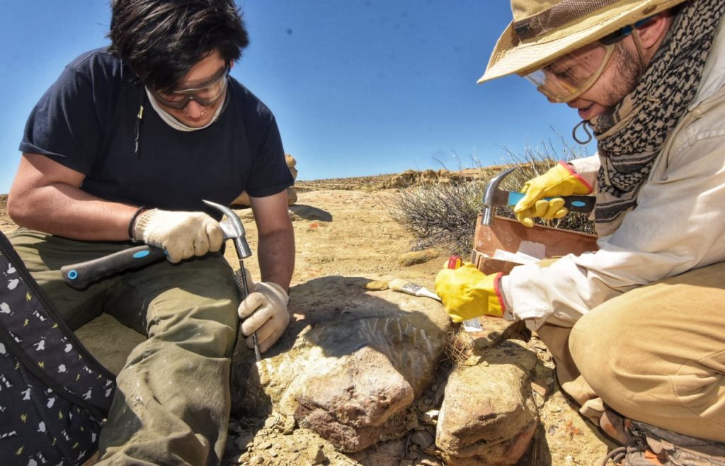 “El sedimento y el terreno en el que trabajamos es bastante duro y por lo tanto necesitamos herramientas como martillos neumáticos y eléctricos para acceder con más facilidad al entorno del fósil, ya que éste en sí sigue siendo frágil y por eso las tareas de extracción son bastante laboriosas. Antes de poder extraer el fósil, debemos confeccionar los bochones que es un elemento realizado con yeso y tela arpillera, que se utiliza para proteger al fósil y poder trasladarlo hasta el museo”, describió.