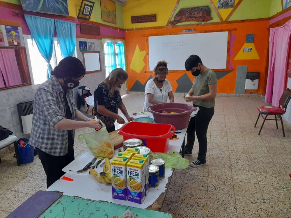 En el día de ayer los integrantes de New Tango se acercaron a la sede del barrio Pampa para elaborar más de 150 vasos de ensalada de frutas que se entregarán a los vecinos y vecinas.