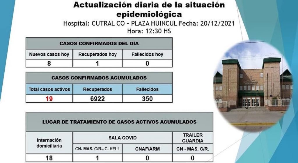 Desde el sector de epidemiología del hospital local informaron que este lunes 20 de diciembre hubo ocho nuevos casos y un recuperado de coronavirus.