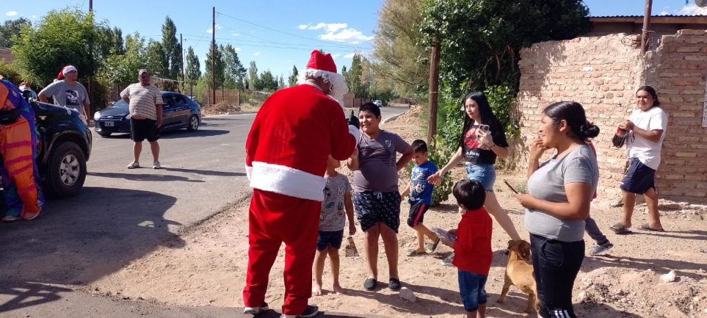 En caravana con Papá Noel y payasos que acompañaron estuvieron por los barrios, Unión, Progreso, Peñi Trapún, Monte Hermoso, Nehuenche y Belgrano (ex450).