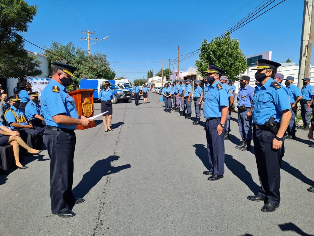 El acto fue presidido por el superintendente de seguridad, Miguel Ángel Riu (exdirector de Cutral Co); que le indicó al comisario Bello “te toca la misión de cuidar a tu gente, a la comarca, Picún Leufú y El Chocón. Hoy la misión es sostener los estándares de seguridad. La comarca tiene un estigma y hay que luchar por cambiarlo”; manifestó.