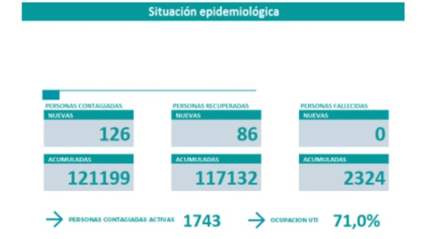 No se registró ningún fallecimiento y el nivel de ocupación de camas es del 71%, porcentaje que se mantuvo estable a pesar del incremento de casos.