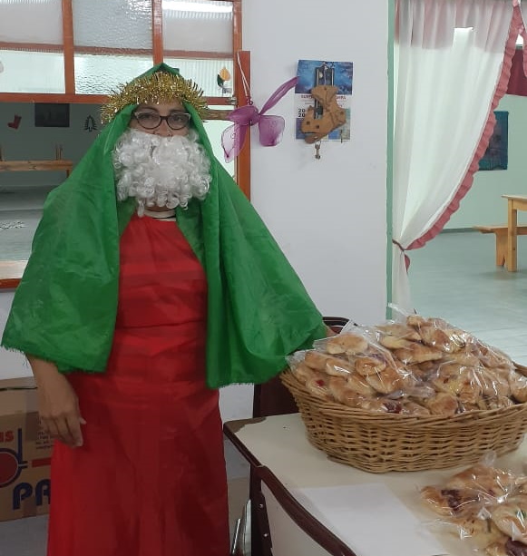 Con la idea de acompañar a las infancias, se disfrazaron y esperaron a los niños que se acercaron a la sede para recibir su regalito. Además entregaron chocolatada y facturas.