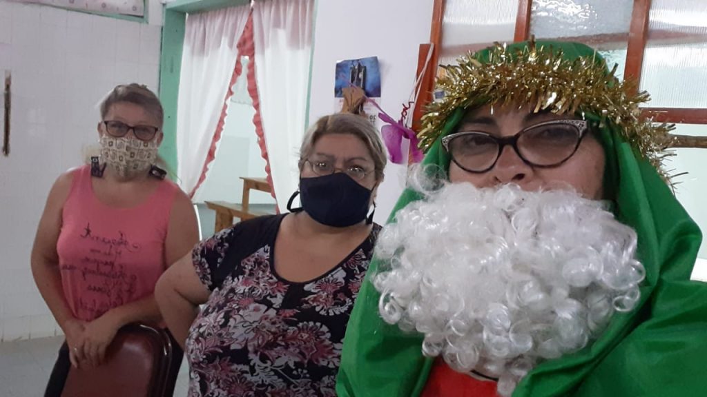 Con la idea de acompañar a las infancias, se disfrazaron y esperaron a los niños que se acercaron a la sede para recibir su regalito. Además entregaron chocolatada y facturas.