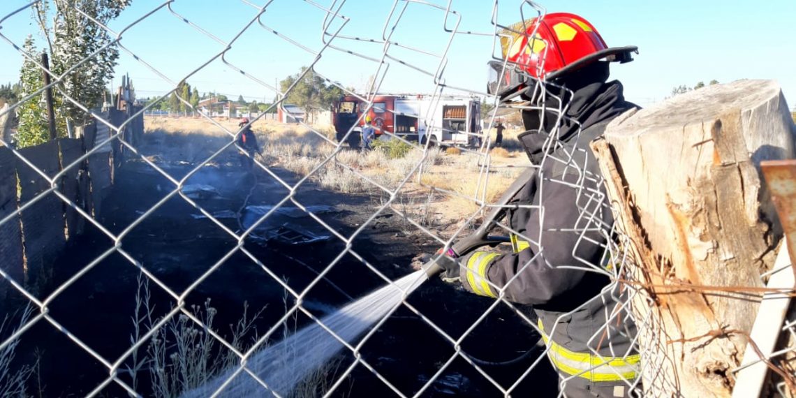 Un incendio de pastizales en la calle Chaco final, en el barrio Otaño de Plaza Huincul este sábado por la tarde. Los bomberos voluntarios huinculenses trabajaron en la extinción y lo controlaron rápidamente.