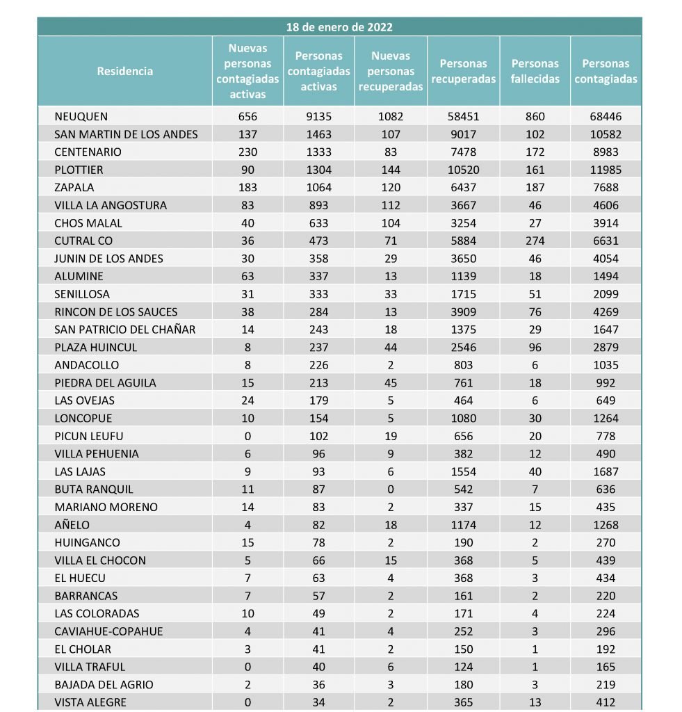 El último parte que emitió el comité de Emergencia Provincial informó que hubo tres personas fallecidas y 1.818 nuevos casos de coronavirus este martes en la provincia del Neuquén.