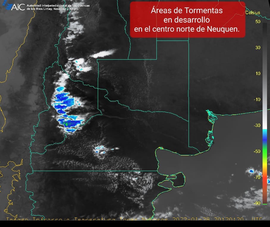 Desde la Autoridad Interjurisdiccional de Cuencas -AIC- se emitió el alerta por tormentas en desarrollo en la zona centro de Neuquén.