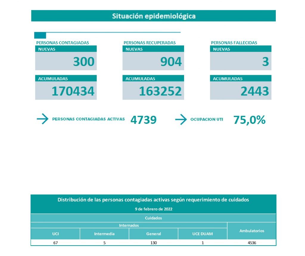 El último informe del Comité de Emergencias provincial indica que fallecieron tres personas en las últimas 24 horas y que se registraron 300 nuevos contagios de COVID-19.