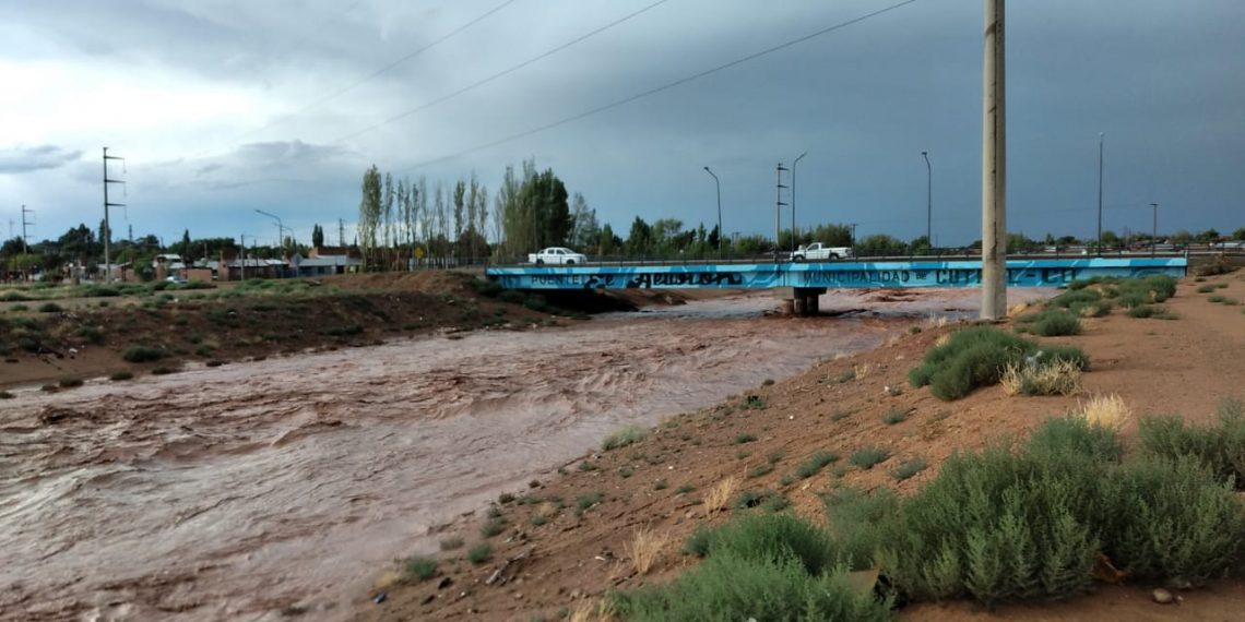 A la altura del puente “El aluvión” en barrio Peñi Trapún, y la zona inicial de Monte Hermoso se puede observa el torrente que con mucha fuerza corre por el sector. Las lluvias no solo estaban anunciadas para esta zona, sino que incluía también Piedra del Águila, Zapala, Picún Leufú.
