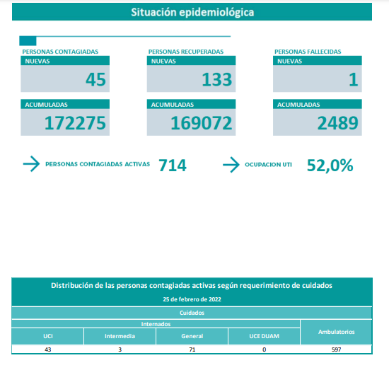Se informó que hubo una sola persona fallecida y que el nivel de ocupación de camas es del 52%