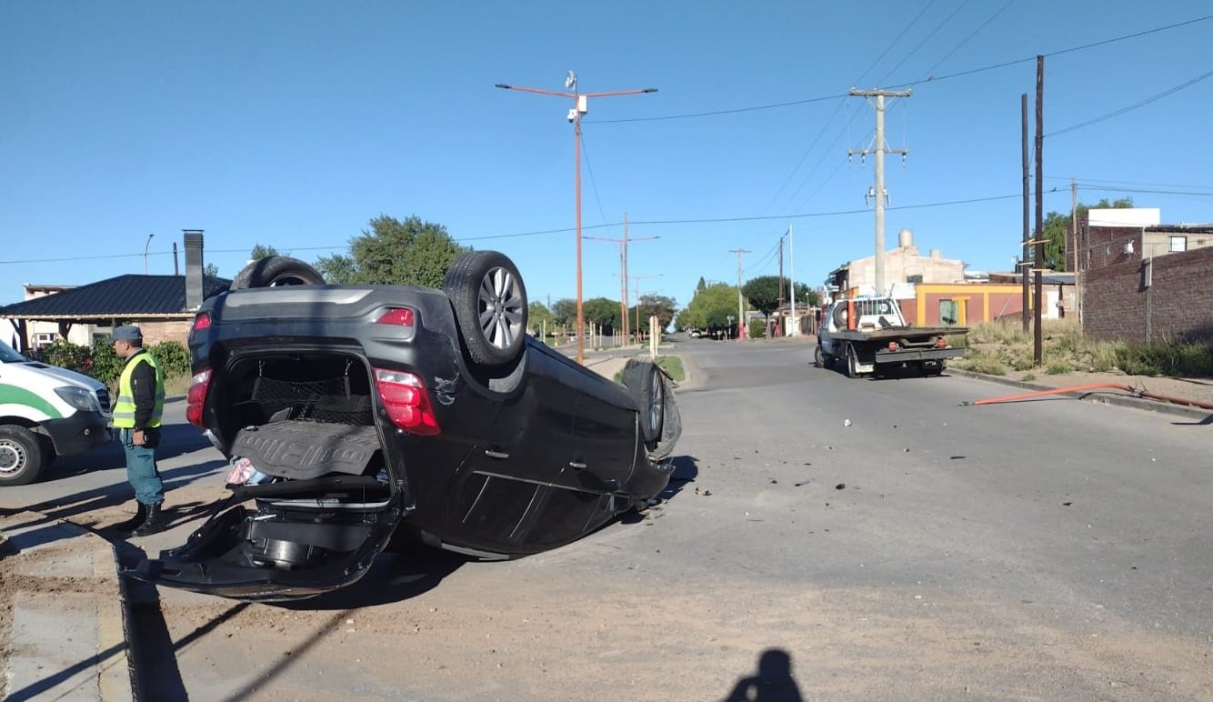 Se desconoce por el momento las razones por las que el conductor perdió el control, mordió el cordón cuneta y cuando llegó a la intersección con Nahuel Huapi, volcó. Terminó en posición invertida, apoyado sobre el techo y las ruedas hacia arriba. Después de ser sometido al test de alcoholemia, se dispuso el traslado de ambos a la guardia del hospital local. Luego de ser atendidos, se les dio el alta porque solo tuvieron leves, tal como se informó.