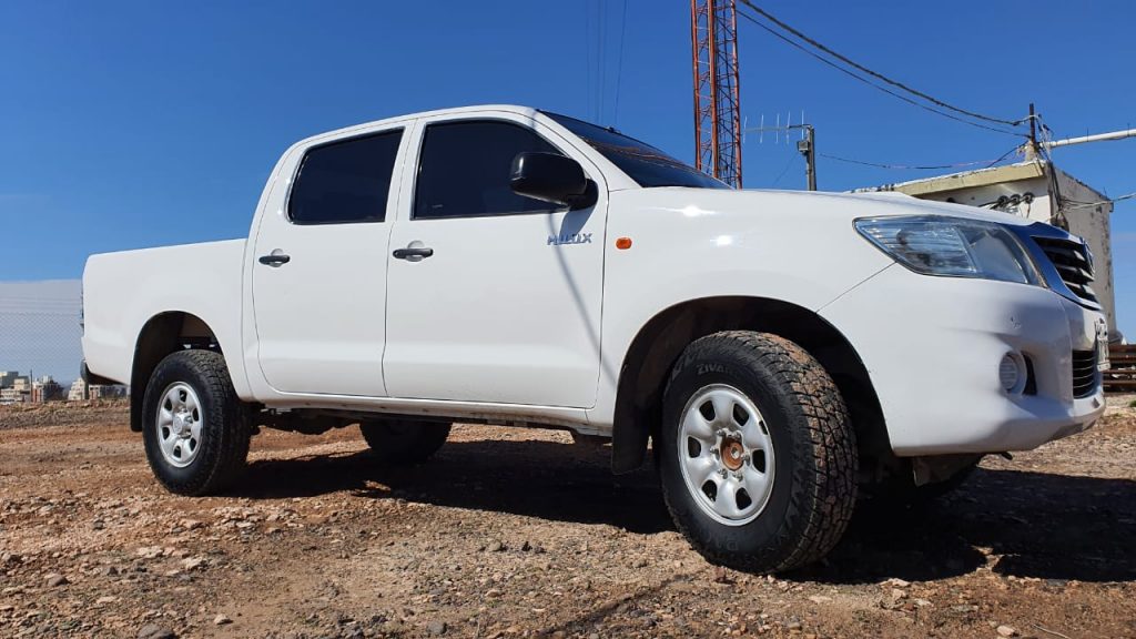 Se trata de un vehículo marca Toyota Hilux, de color blanco y con vidrios polarizados. Se indicó que es idéntica a la que ilustra esta fotografía. La patente es dominio NTX 965.