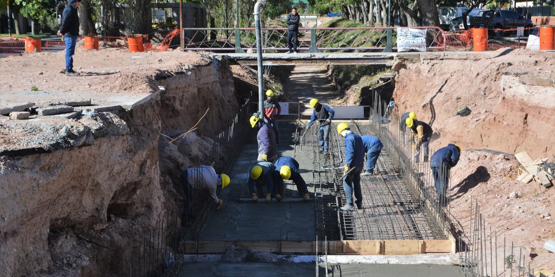 Se comenzó hace algunas semanas con la profundización del canal que es el límite entre Cutral Co y Plaza Huincul. En estos últimos días se comenzó con la cementación de la base.