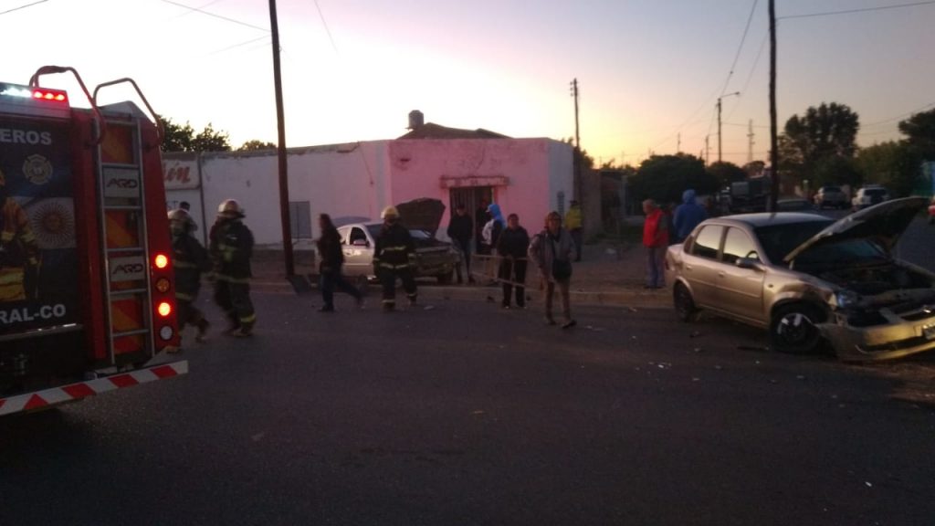 Los bomberos voluntarios debieron intervenir en el accidente y auxiliar a dos personas que fueron trasladadas al hospital. En principio los autos tuvieron un fuerte impacto en la parte frontal y luego giraron hasta quedar los dos mirando para el mismo lado.