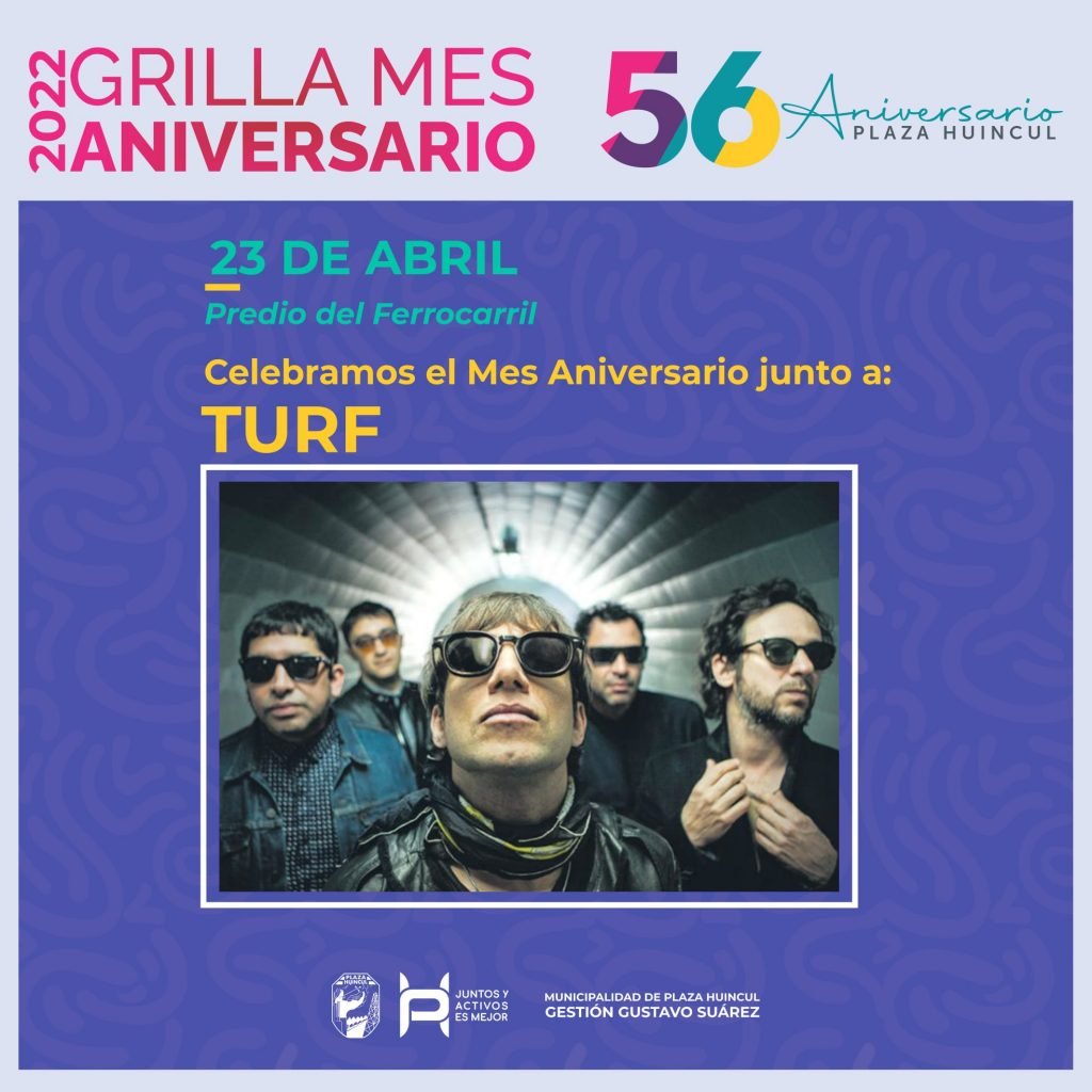 El sábado 23 de abril será el turno de la banda de rock argentina, Turf. Se llevará adelante en el predio del Ferrocarril (atrás del Parque Rivadulla conocido como la U). Las actividades comenzarán a las 18 con ferias de emprendedores, artesanos y pequeños productores. También habrá una muestra fotográfica, retratos del pasado, además de bandas locales.