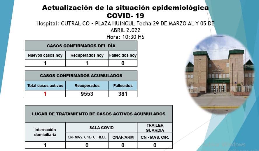 El paciente se encuentra transitando la enfermedad con internación domiciliaria. Además hubo un recuperado.