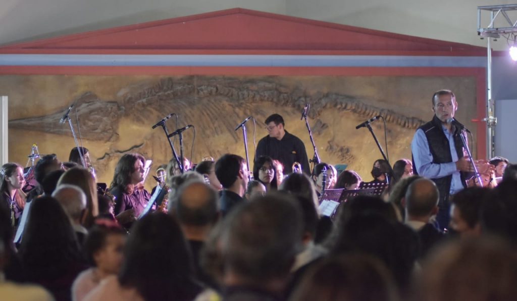 El gobernador Omar Gutiérrez estuvo la noche del martes en Plaza Huincul y participó del concierto “Música en Bandada” que se desarrolló en el museo Carmen Funes.