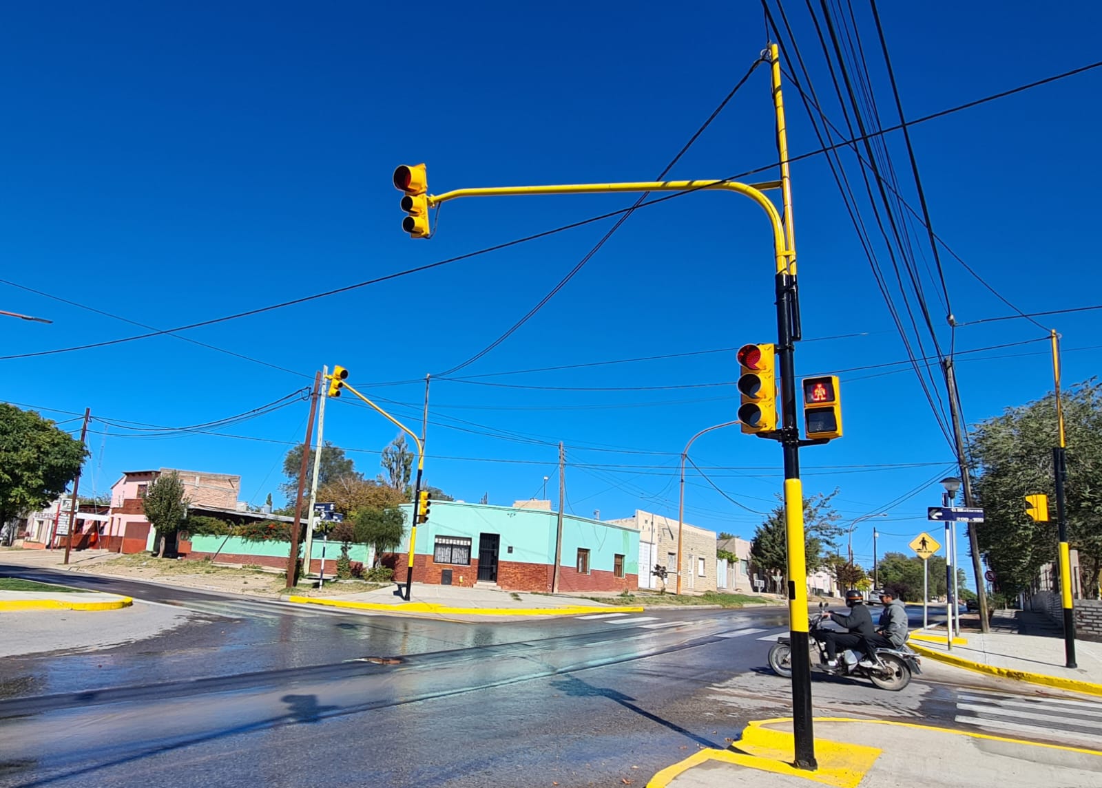 El ordenamiento del tránsito con la señalización nueva en la esquina de la escuela primaria Nº 102 de Cutral Co que implica la demarcación de las sendas peatonales, la colocación de los semáforos y el espacio para el funcionamiento ya está listo.